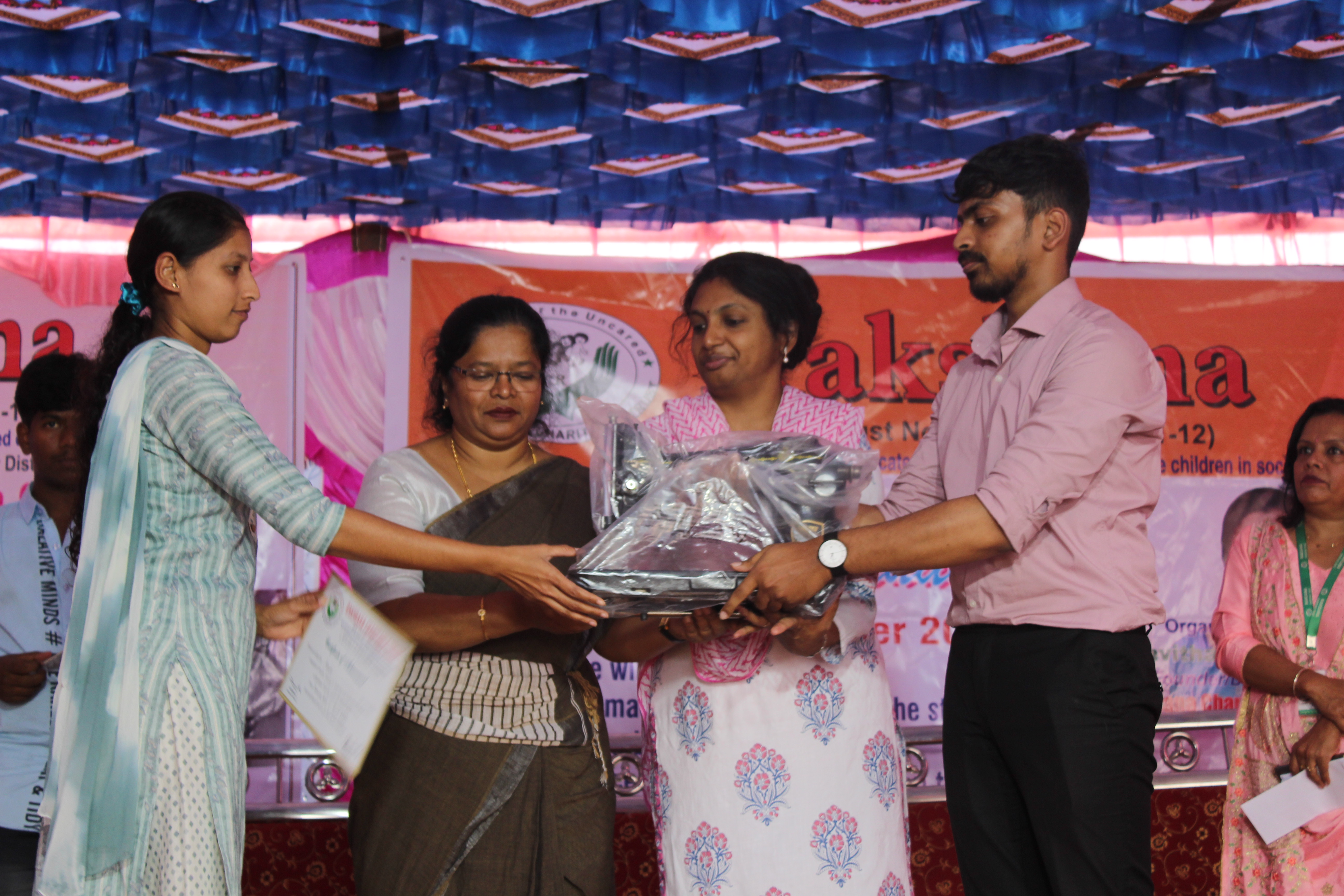 Issued certificate to the tailoring students who completed 06 months Skills development on embroidery and sewing training classes at KGF